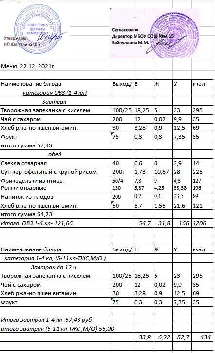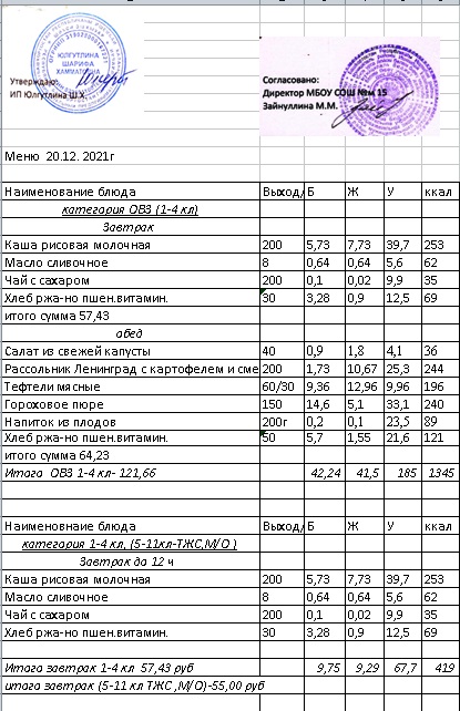 (Меню 1-4 класс, ОВЗ)