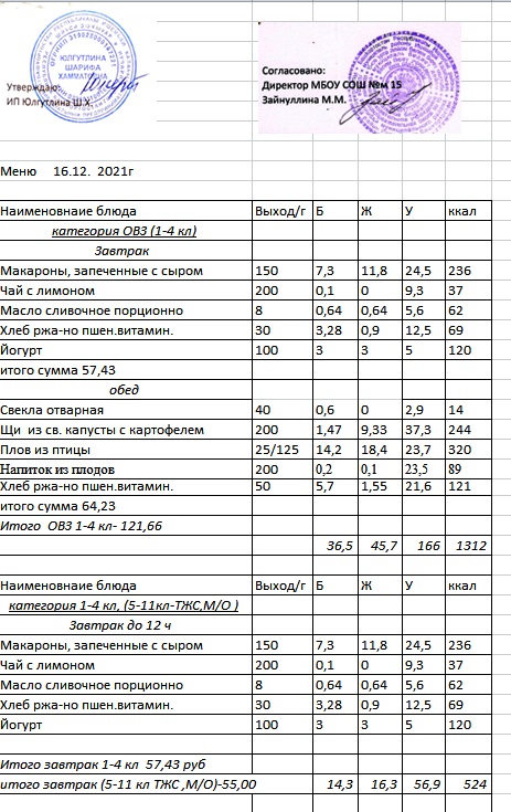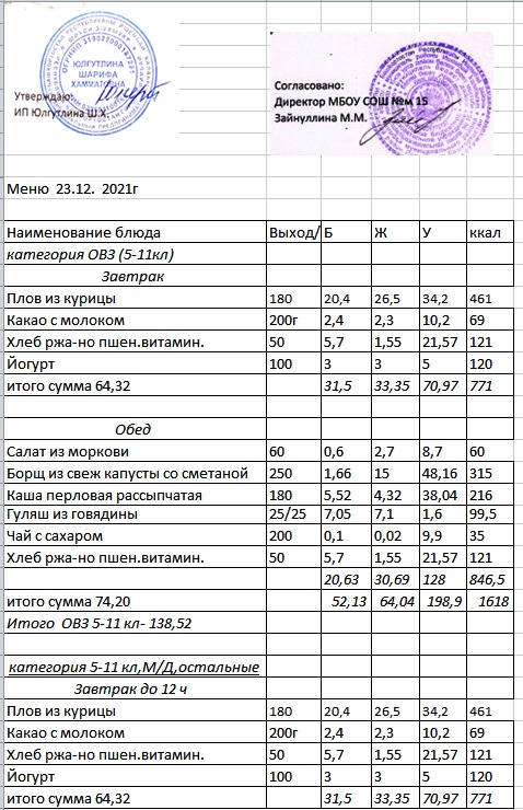 (Меню 5-11 класс, ОВЗ)