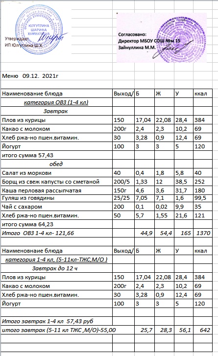 (Меню 5-11 класс, ОВЗ)