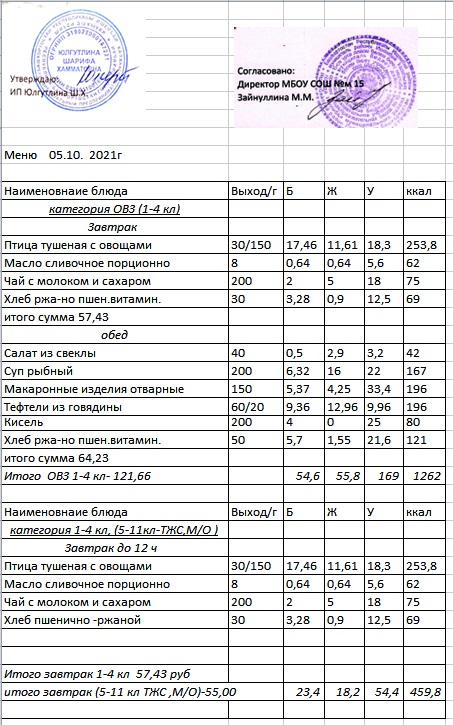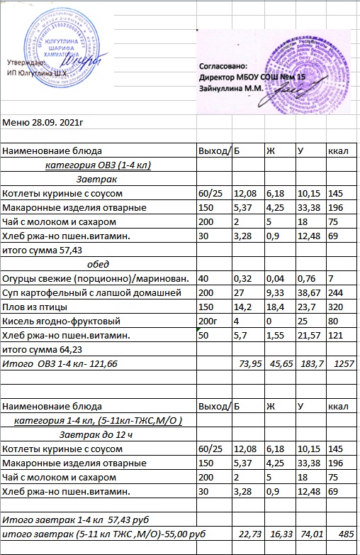 (Меню 5-11 класс, ОВЗ)